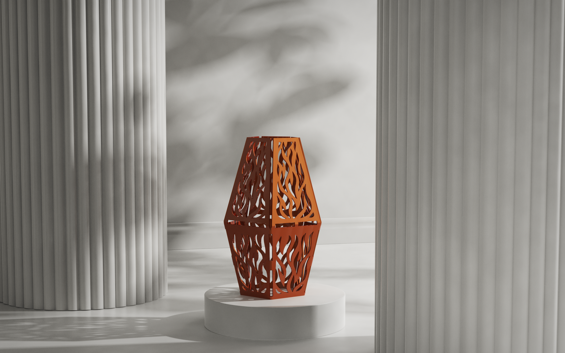 A: Simply place Agni over a compatible light source, and it transforms into a glowing lampshade that brings warmth and character to its surroundings.